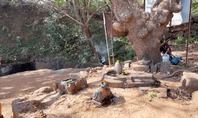 Under a large tree near the caves, we found a Shivling and idols of Lord Hanuman and Chhatrapati Shivaji Maharaj, alongside a Maratha flag. The caves, one of which is spacious enough to accommodate overnight trekkers, provided a glimpse into the fort’s historical use as a shelter. From the top, the fortification walls snaked around the mountain, offering stunning views of the surrounding peaks.